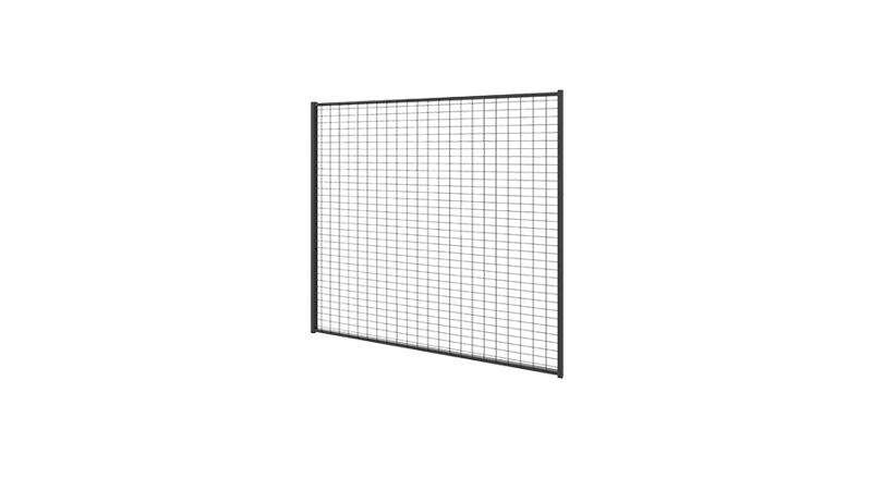 The mesh section is available in two widths, 1100 mm and 2200 mm and three heights. The standard section colour is RAL 9011 (black).